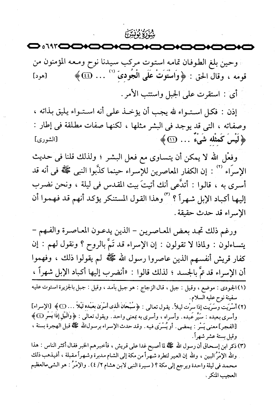 وحين بلغ الطوفان تمامه استوت مركب سيدنا نوح ومعه المؤمنون من قومه، وقال الحق: