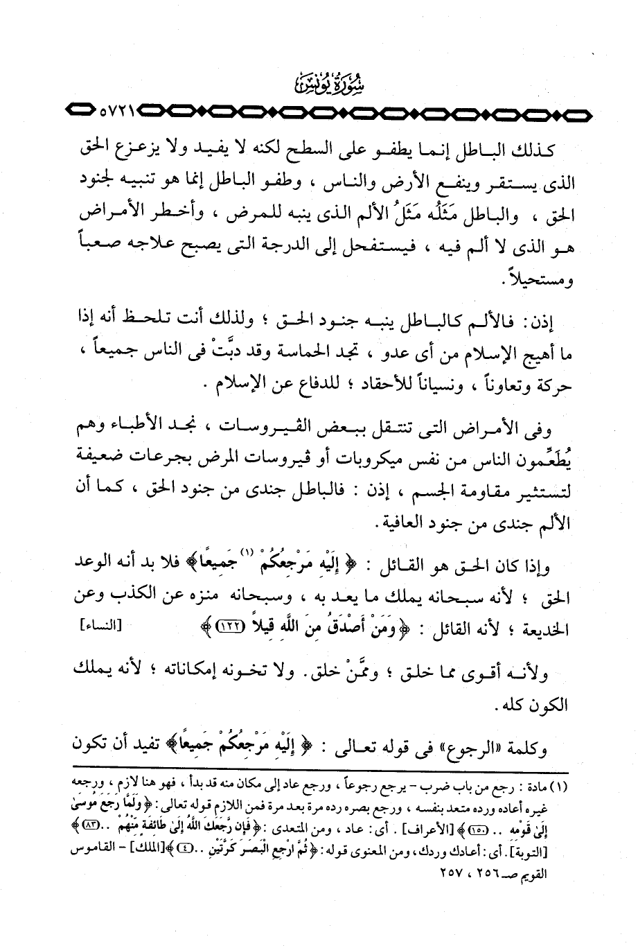 وفي الأمراض التي تنتقل ببعض الفيروسات، نجد الأطباء وهم يُطَعِّمون الناس من نفس ميكروبات أو فيروسات المرض بجرعات ضعيفة لتستثير مقاومة الجسم، إذن: فالباطل جندي من جنود الحق، كما أن الألم جندي من جنود العافية.