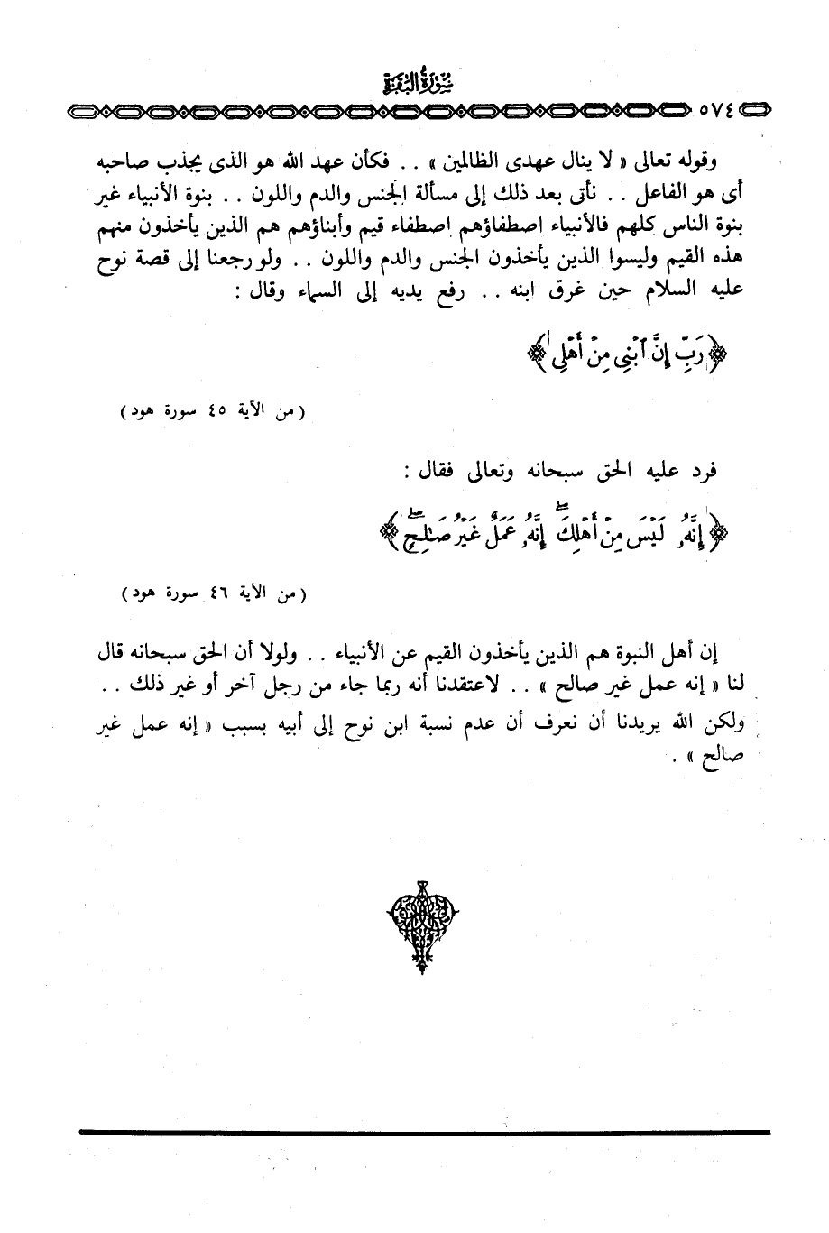 وقوله تعالى {لاَ يَنَالُ عَهْدِي الظالمين} . . فكأن عهد الله هو الذي يجذب صاحبه أي هو الفاعل. . نأتي بعد ذلك إلى مسألة الجنس والدم واللون. . بنوة الأنبياء غير بنوة الناس كلهم فالأنبياء اصطفاؤهم اصطفاء قيم وأبناؤهم هم الذين يأخذون منهم هذه القيم وليسوا الذين يأخذون الجنس والدم واللون. . ولو رجعنا إلى قصة نوح عليه السلام حين غرق ابنه. . رفع يديه إلى السماء وقال: {رَبِّ إِنَّ ابني مِنْ أَهْلِي} [هود: 45]
