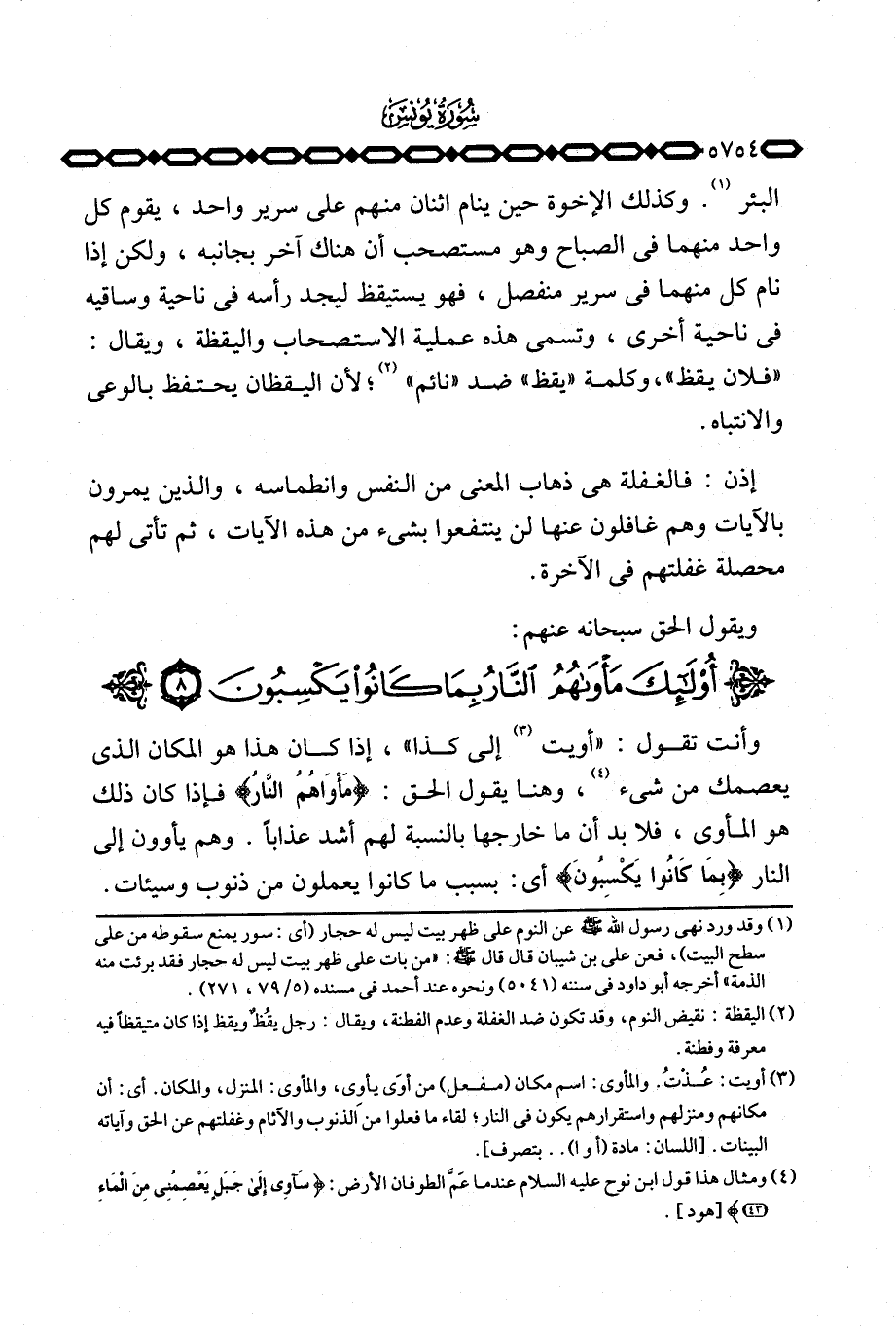 البئر. وكذلك الإخوة حين ينام اثنان منهم على سرير واحد، يقوم كل واحد منهما في الصباح وهو مستصحب أن هناك آخر بجانبه، ولكن إذا نام كل منهما في سرير منفصل، فهو يستيقظ ليجد رأسه في ناحية وساقيه في ناحية أخرى، وتسمى هذه عملية الاستصحاب واليقظة، ويقال «فلان يقظ» ، وكلمة «يقظ» ضد «نائم» ؛ لأن اليقظان يحتفظ بالوعي والانتباه.