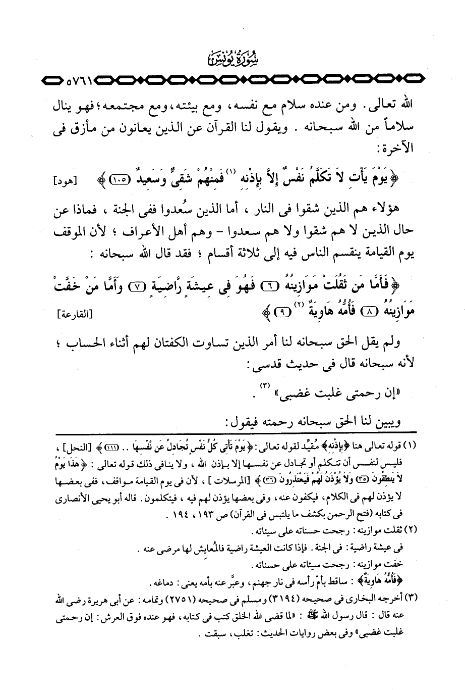 الله تعالى، ومن عنده سلام مع نفسه، ومع بيئته، ومع مجتمعه؛ فهو ينال سلاماً من الله سبحانه. ويقول لنا القرآن عن الذين يعانون من مأزق في الآخرة: {يَوْمَ يَأْتِ لاَ تَكَلَّمُ نَفْسٌ إِلاَّ بِإِذْنِهِ فَمِنْهُمْ شَقِيٌّ وَسَعِيدٌ} [هود: 105] .