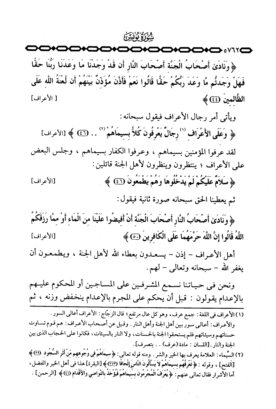لقد عرفوا المؤمنين بسيماهم، وعرفوا الكفار بسيماهم، وجليس البعض على الأعراف؛ ينتظرون وينظرون لأهل الجنة قائلين: {سَلاَمٌ عَلَيْكُمْ لَمْ يَدْخُلُوهَا وَهُمْ يَطْمَعُونَ} [الأعراف: 46] .