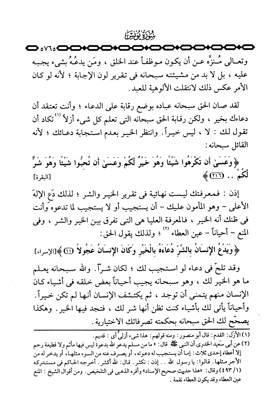 وقد تلحّ في دعاء لو استجيب لك؛ لكان شرّاً. والله سبحانه يعلم ما هو الخير لك، وهو سبحانه يجيب أحياناً بعض خلقه في أشياء كان الإنسان منهم يتمنى أن توجد، ثم يكتشف الإنسان أنها لم تكن خيراً، وأحياناً يأتي لك بأشياء كنت تظن أنها شر لك، فتجد فيها الخير. وهكذا يصحّح لك الحق سبحانه بحكمته تصرفاتك الاختيارية.