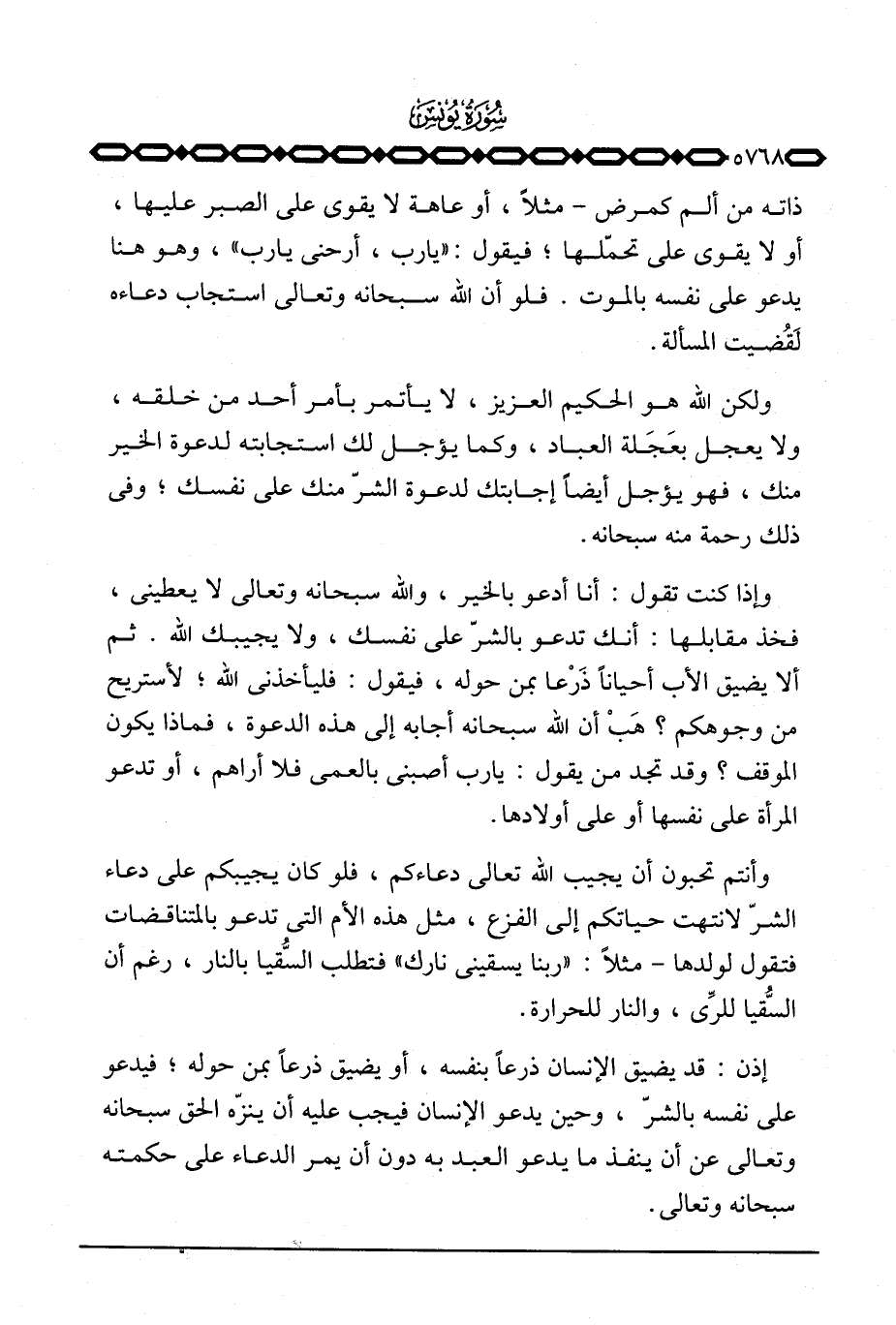 ولكن الله هو الحكيم العزيز، لا يأتمر بأمر أحد من خلقه، ولا يعجل بعَجَلة العباد، وكما يؤجل لك استجابته لدعوة الخير منك، فهو يؤجل أيضاً إجابتك لدعوة الشرّ منك على نفسك؛ وفي ذلك رحمة منه سبحانه.