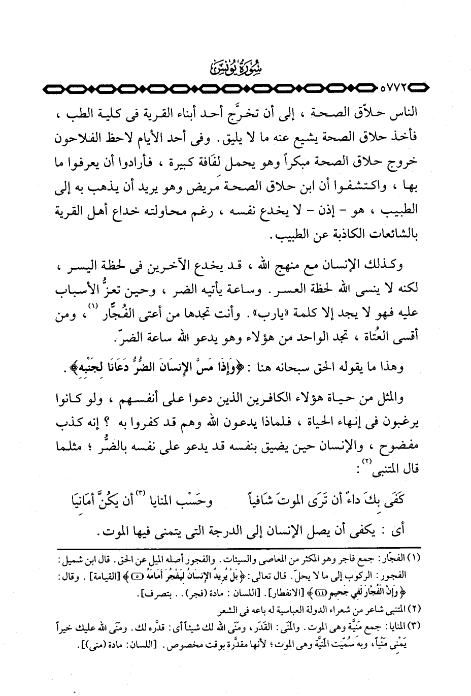 وكذلك الإنسان مع منهج الله، قد يخدع الآخرين في لحظة اليسر، لكنه لا ينسى الله لحظة العسر. وساعة يأتيه الضر، وحين تعزُّ الأسباب عليه فهو لا يجد إلا كلمة «يا رب» . وأنت تجدها من أعتى الفُجَّار، ومن أقسى العُتاة، تجد الواحد من هؤلاء وهو يدعو الله ساعة الضرّ.