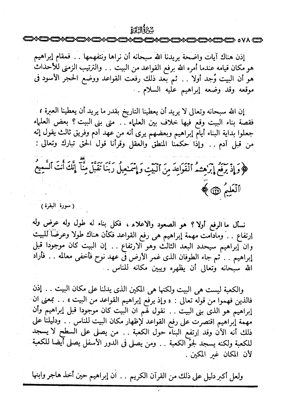 إن الله سبحانه وتعالى لا يريد أن يعطينا التاريخ بقدر ما يريد أن يعطينا العبرة؛ فقصة بناء البيت وقع فيها خلاف بين العلماء. . متى بني البيت؟ بعض العلماء جعلوا بداية البناء أيام إبراهيم وبعضهم يرى أنه من عهد آدم وفريق ثالث يقول إنه من قبل آدم. . وإذا حكمنا المنطق والعقل وقرأنا قول الحق تبارك وتعالى: {وَإِذْ يَرْفَعُ إِبْرَاهِيمُ القواعد مِنَ البيت وَإِسْمَاعِيلُ رَبَّنَا تَقَبَّلْ مِنَّآ إِنَّكَ أَنتَ السميع العليم} [البقرة: 127]