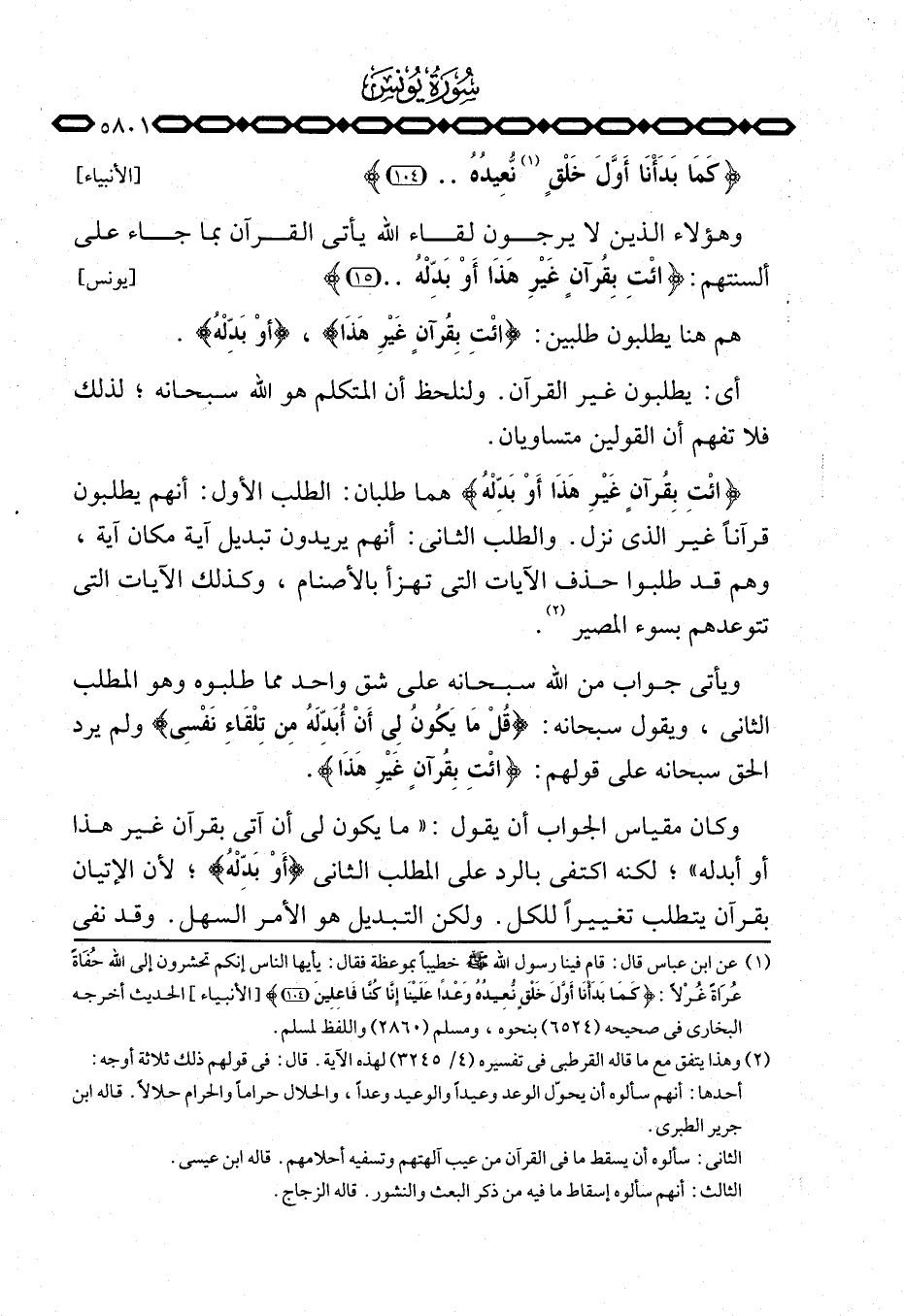 {ائت بِقُرْآنٍ غَيْرِ هاذآ أَوْ بَدِّلْهُ} هما طلبان: الطلب الأول: أنهم يطلبون قرآناً غير الذي نزل. والطلب الثاني: أنهم يريدون تبديل آية مكان آية، وهم قد طلبوا حذف الآيات التي تهزأ بالأصنام، وكذلك الآيات التي تتوعدهم بسوء المصير.
