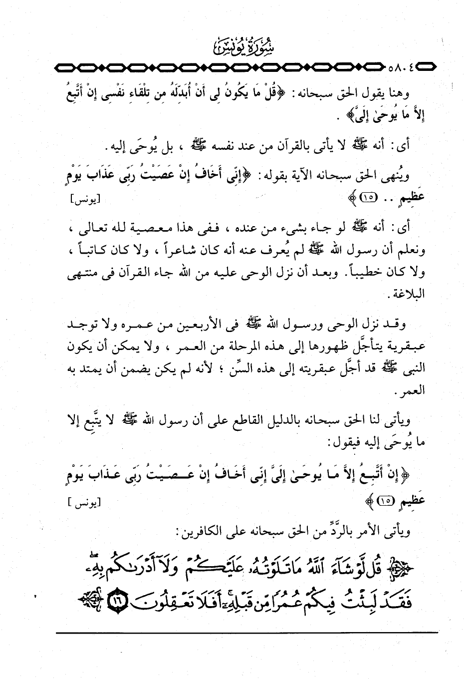 {إِنْ أَتَّبِعُ إِلاَّ مَا يوحى إِلَيَّ إني أَخَافُ إِنْ عَصَيْتُ رَبِّي عَذَابَ يَوْمٍ عَظِيمٍ} [يونس: 15]