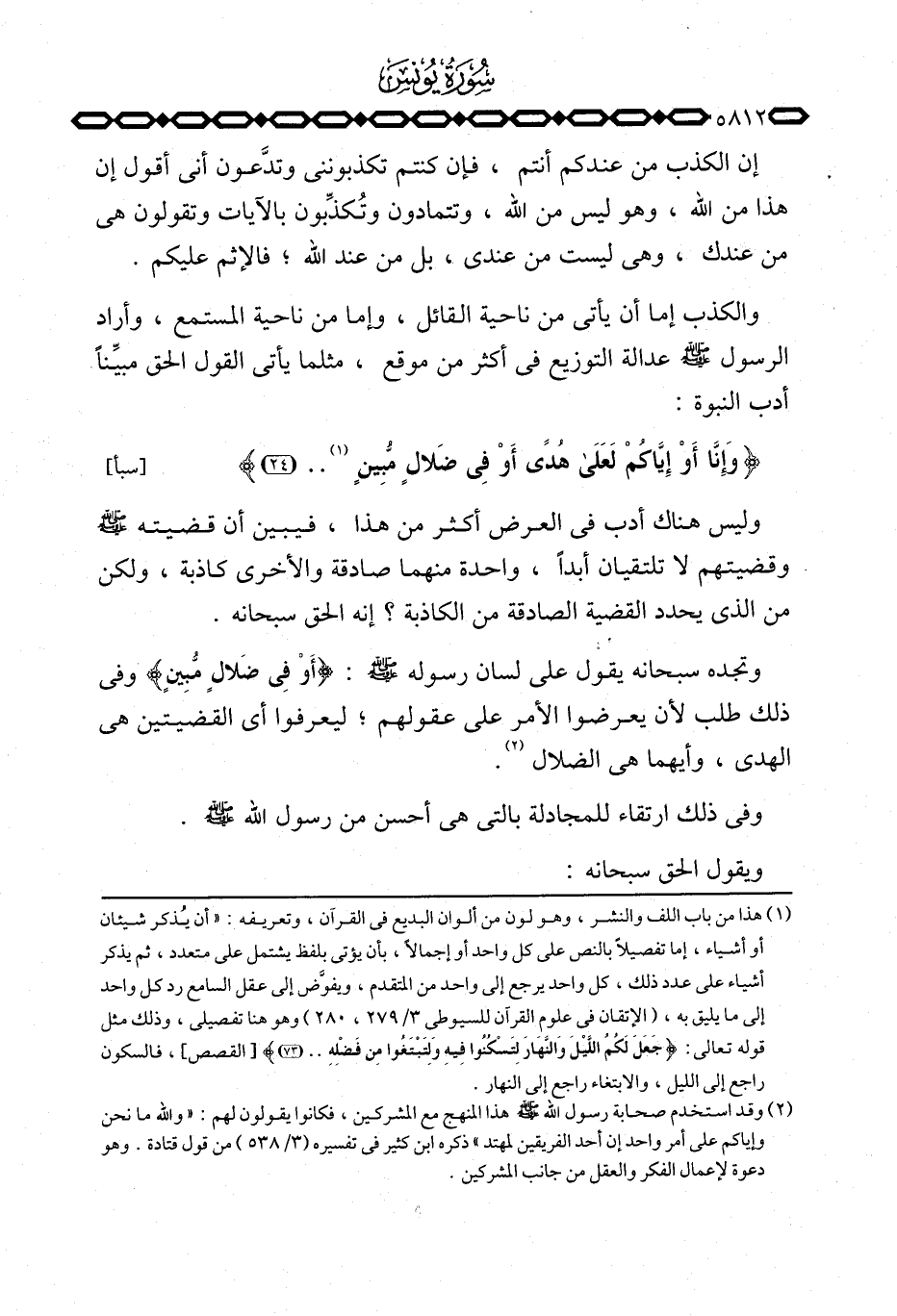 وتجده سبحانه يقول على لسان رسوله صَلَّى اللَّهُ عَلَيْهِ وَسَلَّم َ: {أَوْ فِي ضَلاَلٍ مُّبِينٍ} وفي ذلك طلب لأن يعرضوا الأمر على عقولهم؛ ليعرفوا أي القضيتين هي الهدى، وأيهما هي الضلال.