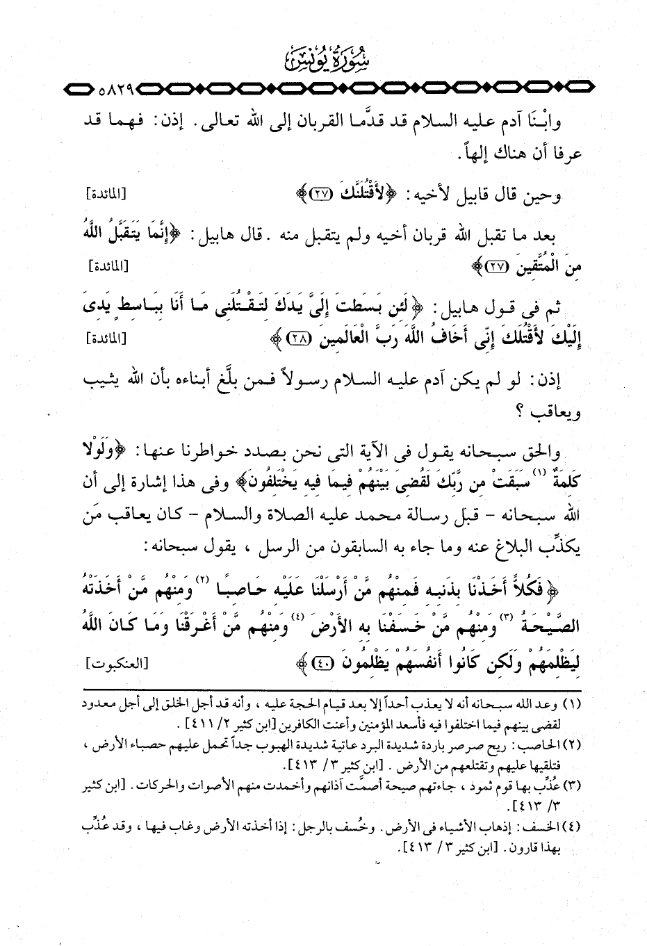بعد ما تقبل الله قربان أخيه ولم يتقبل منه. قال هابيل: {إِنَّمَا يَتَقَبَّلُ الله مِنَ المتقين} [المائدة: 27]