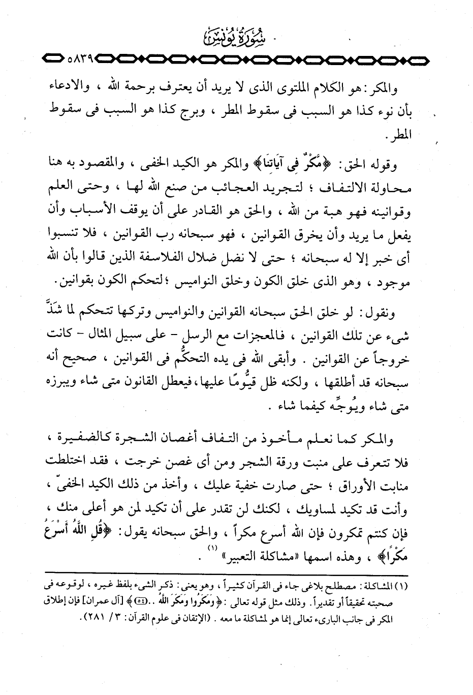 وقوله الحق: {مَّكْرٌ في آيَاتِنَا} والمكر هو الكيد الخفي، والمقصود به هنا محاولة الالتفاف؛ لتجريد العجائب من صنع الله لها، وحتى العلم وقوانينه فهو هبة من الله، والحق هو القادر على أن يوقف الأسباب وأن يفعل ما يريد وأن يخرق القوانين، فهو سبحانه رب القوانين، فلا تنسبوا أي خبر إلا له سبحانه؛ حتى لا نضل ضلال الفلاسفة الذين قالوا بأن الله موجود، وهو الذي خلق الكون وخلق النواميس؛ لتحكم الكون بقوانين.