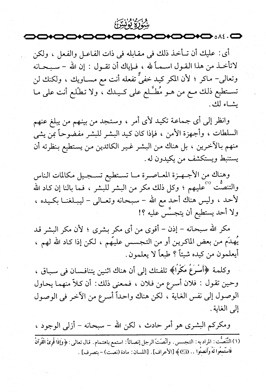 مكر الله سبحانه إذن أقوى من أي مكرٍ بشري؛ لأن مكر البشر قد يُهدَم من بعض الماكرين أو من التجسس عليهم، لكن إذا كاد الله لهم، أيعلمون من كيده شيئاً؟ طبعاً لا يعملون.
