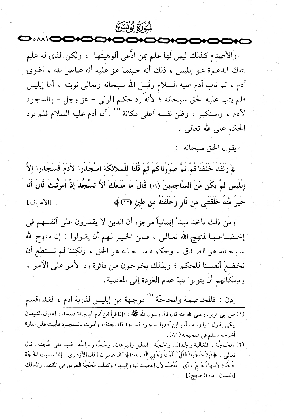 {وَلَقَدْ خَلَقْنَاكُمْ ثُمَّ صَوَّرْنَاكُمْ ثُمَّ قُلْنَا للملائكة اسجدوا لأَدَمَ فسجدوا إِلاَّ إِبْلِيسَ لَمْ يَكُنْ مِّنَ الساجدين قَالَ مَا مَنَعَكَ أَلاَّ تَسْجُدَ إِذْ أَمَرْتُكَ قَالَ أَنَاْ خَيْرٌ مِّنْهُ خَلَقْتَنِي مِن نَّارٍ وَخَلَقْتَهُ مِن طِينٍ} [الأعراف: 1112] .