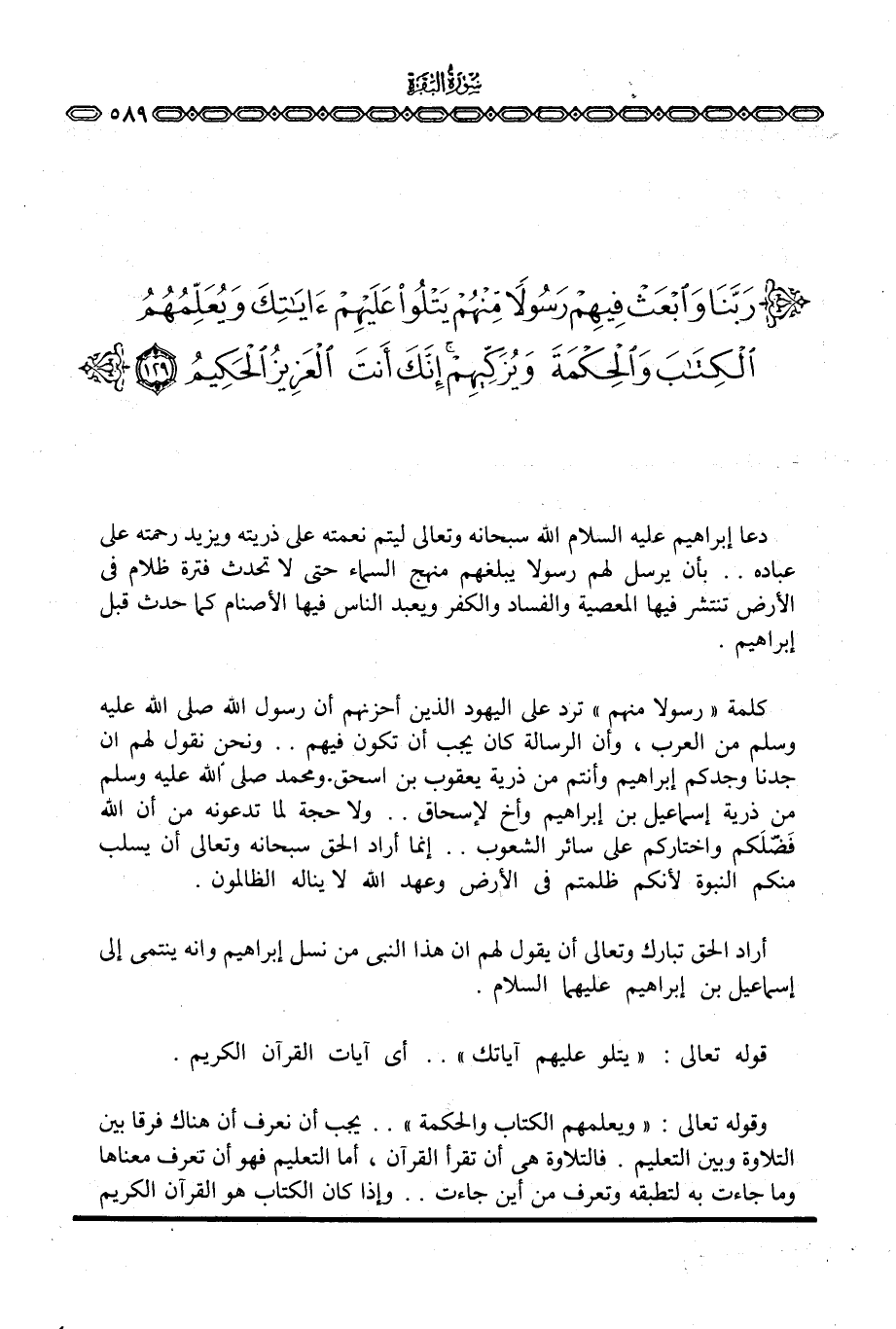 دعاء إبراهيم عليه السلام الله سبحانه وتعالى ليتم نعمته على ذريته ويزيد رحمته على عباده. . بأن يرسل لهم رسولا يبلغهم منهج السماء حتى لا تحدث فترة ظلام في الأرض تنتشر فيها المعصية والفساد والكفر ويبعد الناس فيها الأصنام كما حدث قبل إبراهيم.