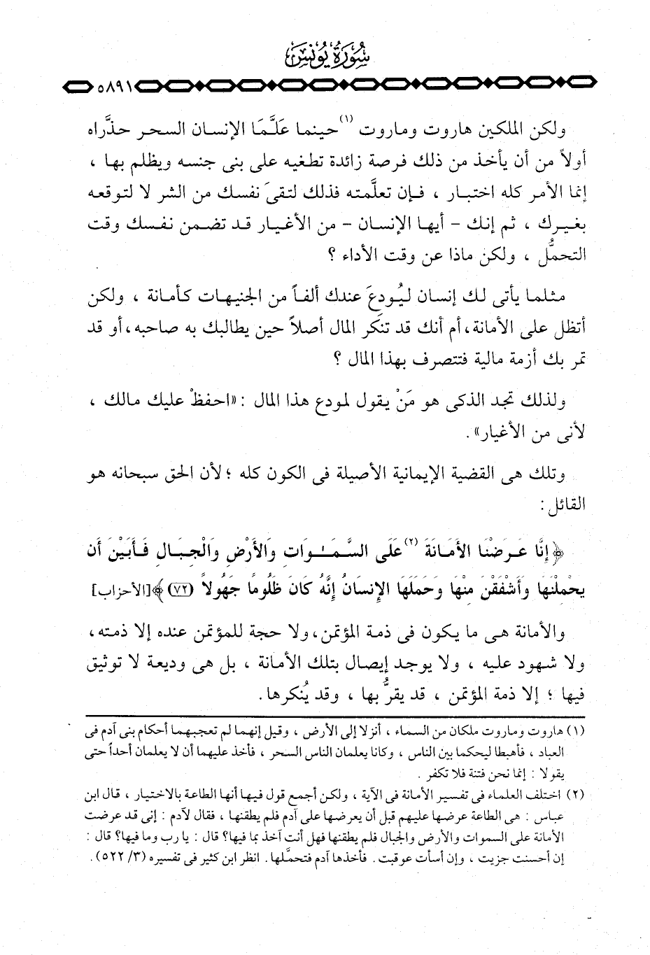 {إِنَّا عَرَضْنَا الأمانة عَلَى السماوات والأرض والجبال فَأبَيْنَ أَن يَحْمِلْنَهَا وَأَشْفَقْنَ مِنْهَا وَحَمَلَهَا الإنسان إِنَّهُ كَانَ ظَلُوماً جَهُولاً} [الأحزاب: 72]