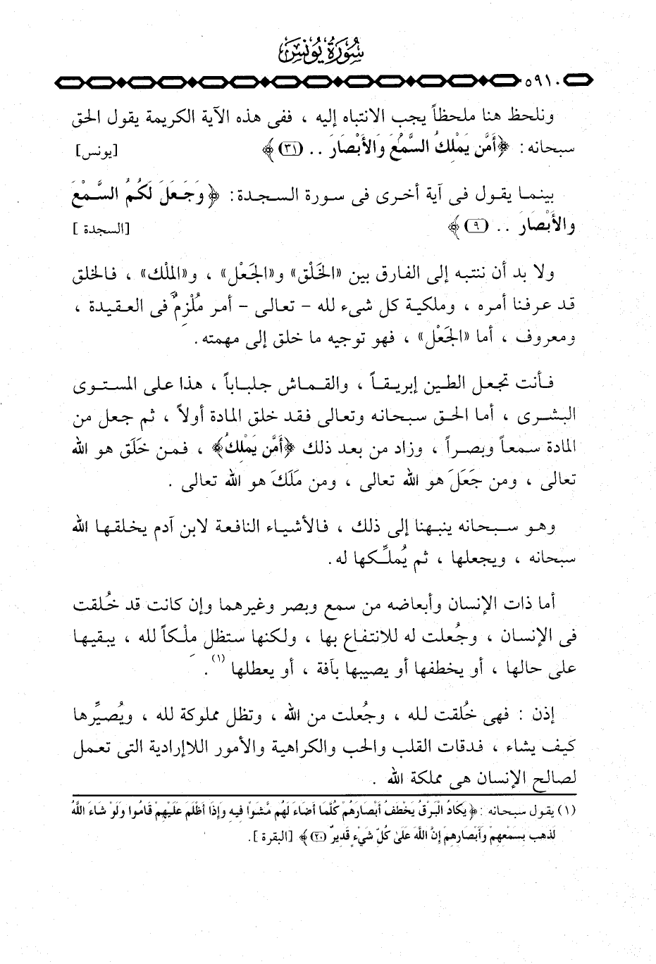 ولا بد أن ننتبه إلى الفارق بين «الخَلْق» و «الجَعْل» ، و «الملْك» ، فالخلق قد عرفنا أمره، وملكية كل شيء لله تعالى أمر مُلْزِمٌ في العقيدة، ومعروف، أما «الجَعْل» ، فهو توجيه ما خلق إلى مهمته.
