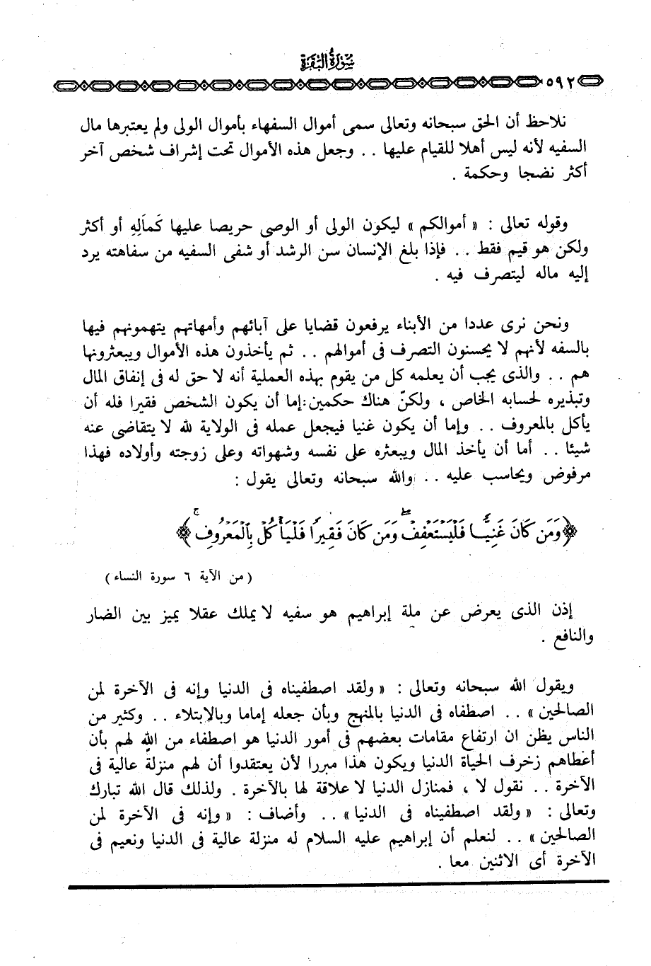 نلاحظ أن الحق سبحانه وتعالى سمى أموال السفهاء بأموالي الولي ولم يعتبرها مال السفيه لأنه ليس أهلا للقيام عليها. . وجعل هذه الأموال تحت إشراف شخص آخر أكثر نضجا وحكمة.
