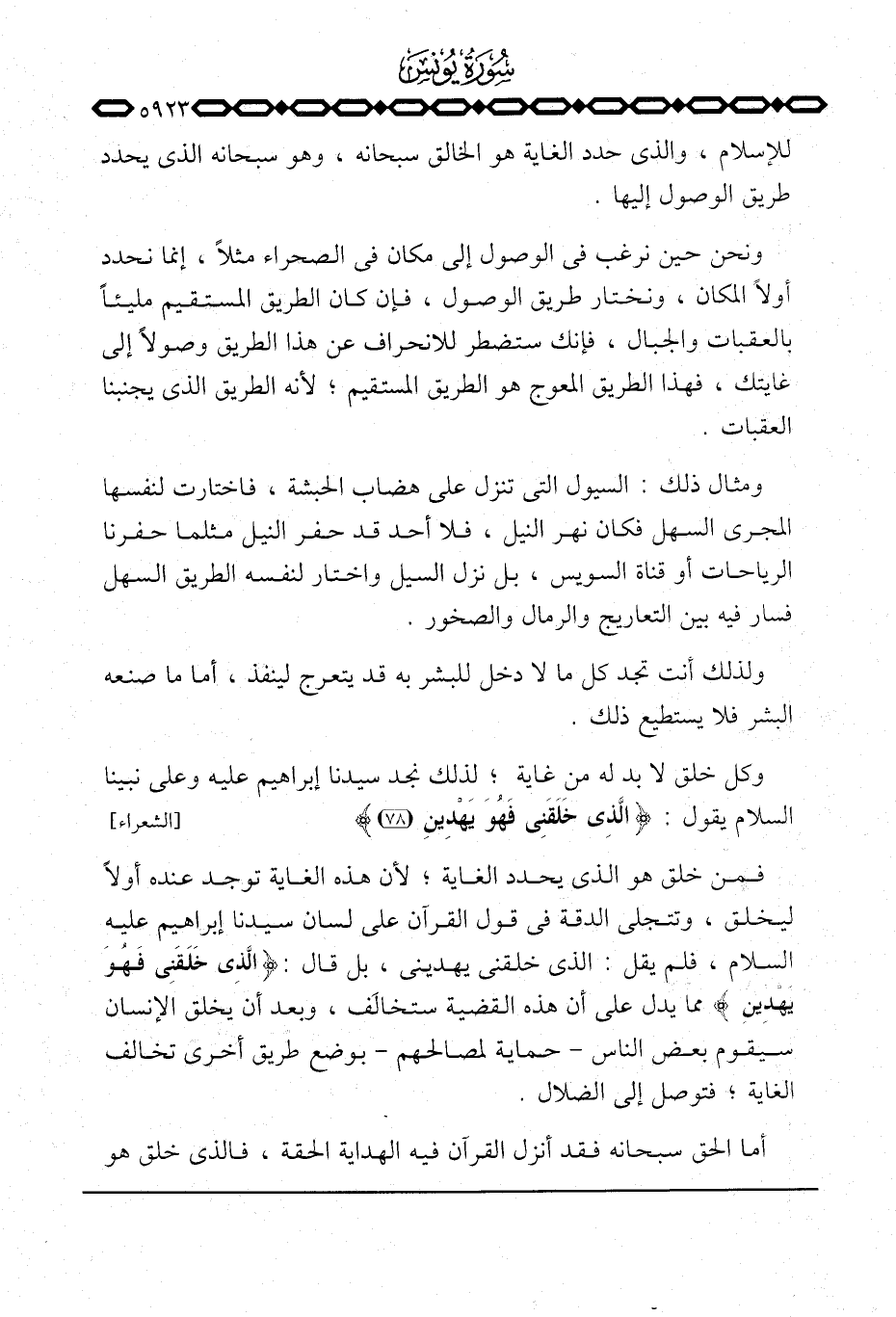 فمن خلق هو الذي يحدد الغاية؛ لأن هذه الغاية توجد عنده أولاً ليخلق، وتتجلى الدقة في قول القرآن على لسان سيدنا إبراهيم عليه السلام، فلم يقل: الذي خلقني يهديني، بل قال: {الذي خَلَقَنِي فَهُوَ يَهْدِينِ} مما يدل على أن هذه القضية ستخالَف، وبعد أن يخلق الإنسان سيقوم بعض الناس حماية لمصالحهم بوضع طريق أخرى تخالف الغاية؛ فتوصل إلى الضلال.