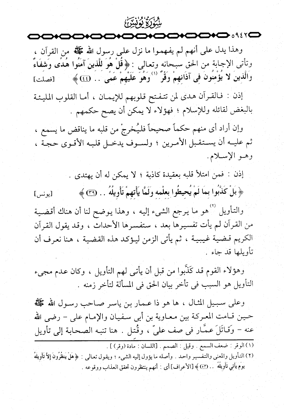 والتأويل هو ما يرجع الشيء إليه، وهذا يوضح لنا أن هناك أقضية من القرآن لم يأت تفسيرها بعد، ستفسرها الأحداث، وقد يقول القرآن الكريم قضية غيبية، ثم يأتي الزمن ليؤكد هذه القضية، هنا نعرف أن تأويلها قد جاء.