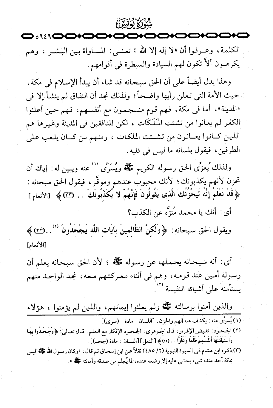 الكلمة، وعرفوا أن «لا إله إلا الله» تعني: المساواة بين البشر، وهم يكرهون ألاَّ تكون لهم السيادة والسيطرة في أقوامهم.