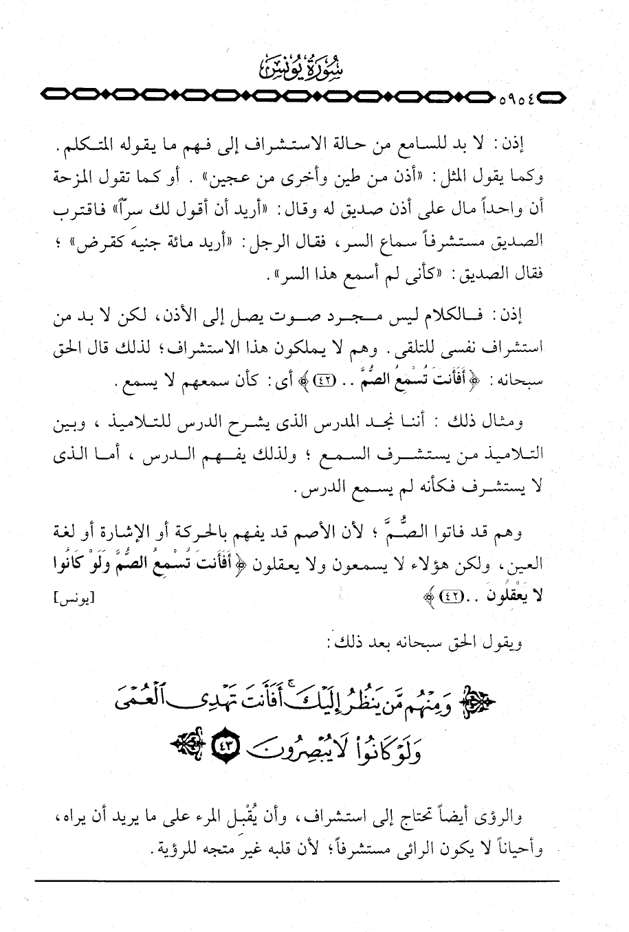 إذن: فالكلام ليس مجرد صوت يصل إلى الأذن، لكن لا بد من استشراف نفسي للتقلي. وهم لا يملكون هذا الاستشراف؛ لذلك قال الحق سبحانه: {أَفَأَنتَ تُسْمِعُ الصم} [يونس: 42] أي: كان سمعهم لا يسمع.