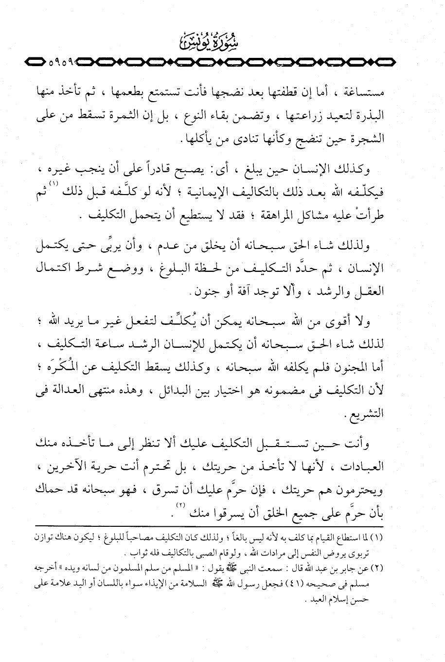 ولا أقوى من الله سبحانه يمكن أن يُكلِّف لتفعل غير ما يريد الله؛ لذلك شاء الحق سبحانه أن يكتمل للإنسان الرشد ساعة التكليف، أم المجنون فلم يكلفه الله سبحانه، وكذلك يسقط التكليف عن المُكْرَه؛ لأن التكليف في مضمونه هو اختيار بين البدائل، وهذه منتهى العدالة في التشريع.