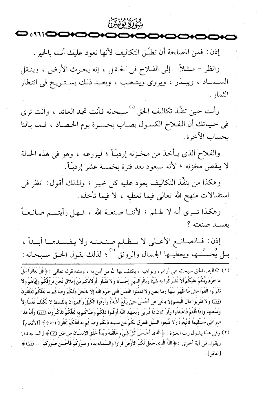 وانظر مثلاً إلى الفلاح في الحقل، إنه يحرث الأرض، وينقل السماد، ويبذر، ويروى ويتعب، وبعد ذلك يستريح في انتظار الثمار.