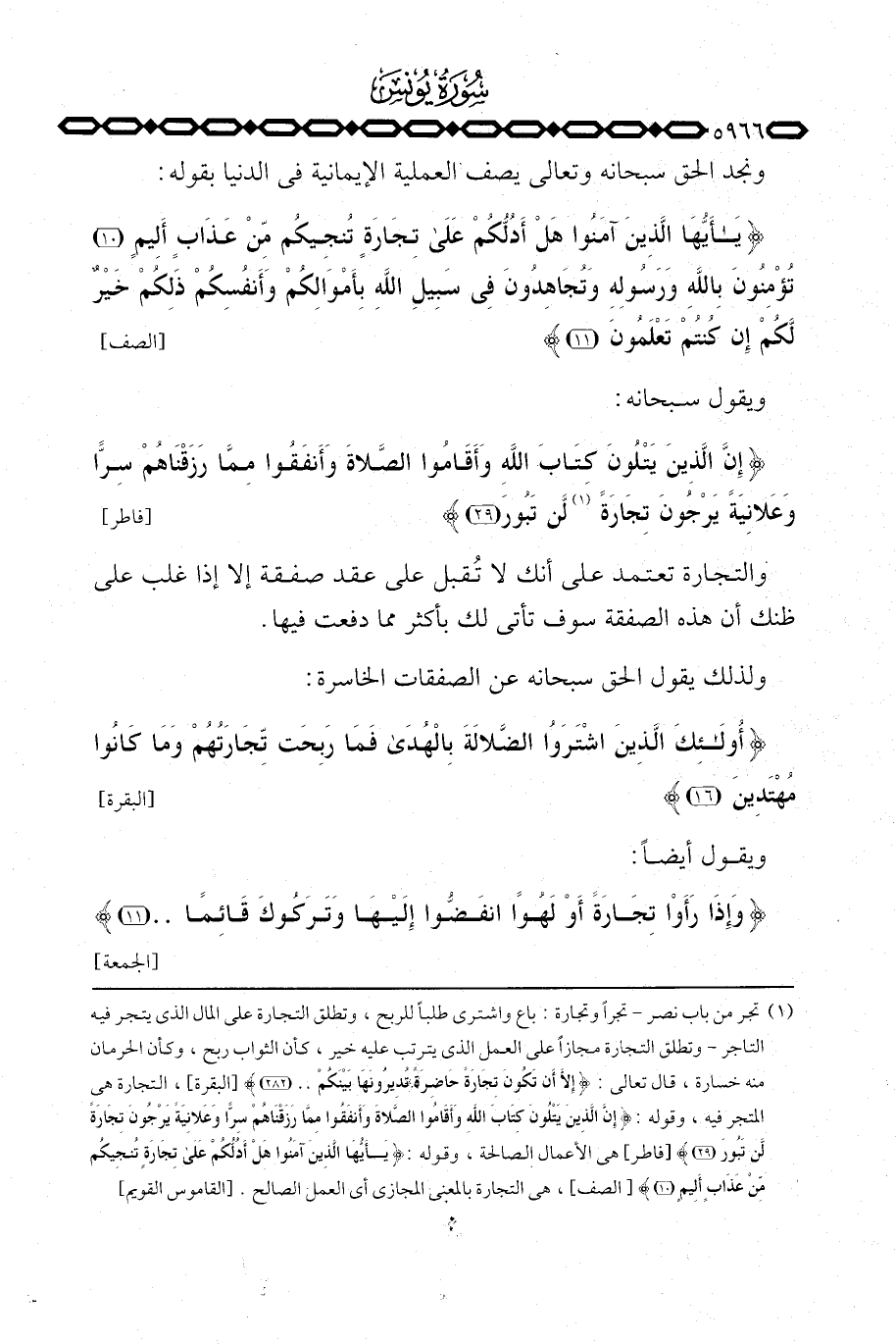 {ياأيها الذين آمَنُواْ هَلْ أَدُلُّكمْ على تِجَارَةٍ تُنجِيكُم مِّنْ عَذَابٍ أَلِيمٍ تُؤْمِنُونَ بالله وَرَسُولِهِ وَتُجَاهِدُونَ فِي سَبِيلِ الله بِأَمْوَالِكُمْ وَأَنفُسِكُمْ ذَلِكُمْ خَيْرٌ لَّكُمْ إِن كُنتُمْ تَعْلَمُونَ} [الصف: 1011] .