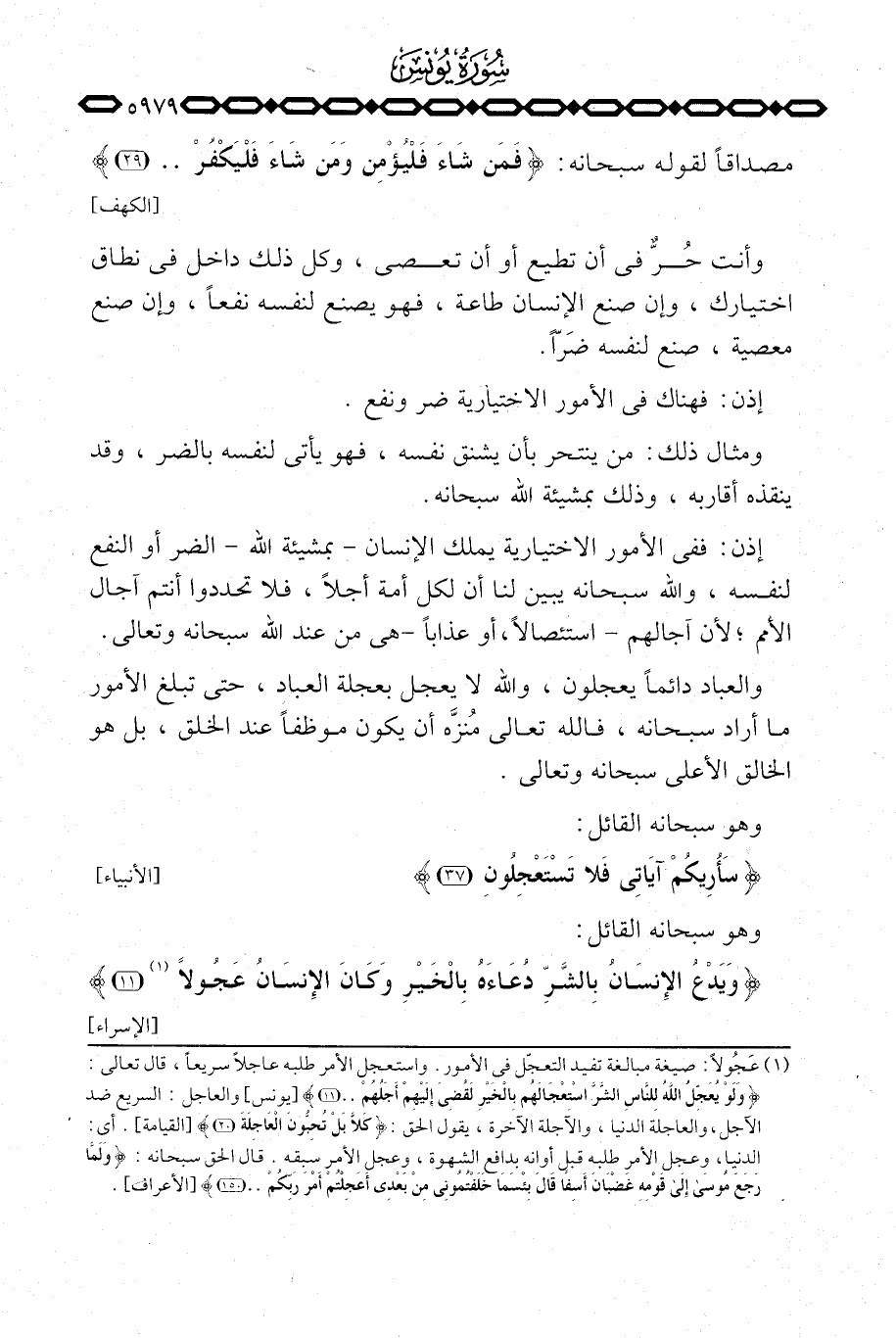 مصداقاً لقوله سبحانه: {فَمَن شَآءَ فَلْيُؤْمِن وَمَن شَآءَ فَلْيَكْفُرْ} [الكهف: 29] .