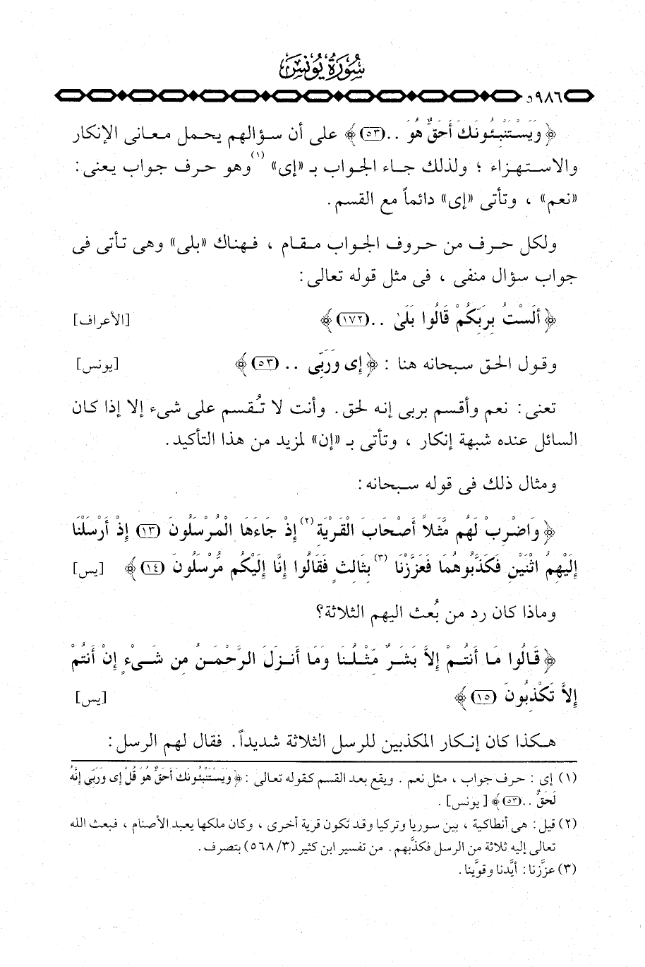{وَيَسْتَنْبِئُونَكَ أَحَقٌّ هُوَ} [يونس: 53] على أن سؤالهم يحمل معاني الإنكار والاستهزاء؛ ولذلك جاء الجواب ب «أي» وهو حرف جواب يعني: «نعم» ، وتأتي «أي» دائماً مع القسم.