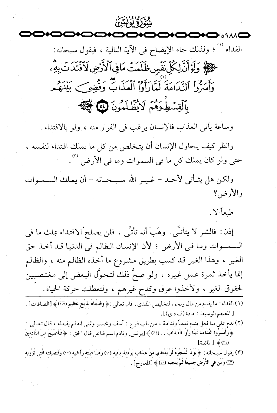 الفداء؛ ولذلك جاء الإيضاح في الآية التالية، فيقول سبحانه: {وَلَوْ أَنَّ لِكُلِّ نَفْسٍ ظَلَمَتْ مَا فِي الأرض}
