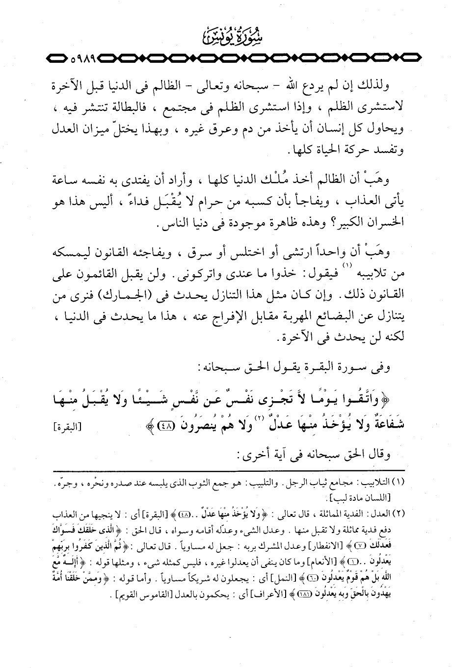 وهَبْ أن واحداً ارتشى أو اختلس أو سرق، ويفاجئه القانون ليمسكه من تلابيبه فيقول: خذوا ما عندي واتركوني. ولن يقبل القائمون على القانون ذلك. وإن كان مثل هذا التنازل يحدث في (الجمارك) فنرى من يتنازل عن البضائع المهربة مقابل الإفراج عنه، هذا ما يحدث في الدنيا، لكنه لن يحدث في الآخرة.