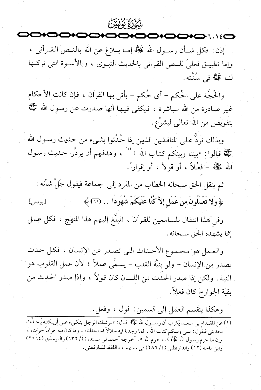 وبذلك نردُّ على المنافقين الذين إذا حُدِّثوا بشيء من حديث رسول الله صَلَّى اللَّهُ عَلَيْهِ وَسَلَّم َ: قالوا: «بيننا وبينكم كتاب الله» وهدفهم أن يردُّوا حديث رسول الله صَلَّى اللَّهُ عَلَيْهِ وَسَلَّم َ فِعْلاً، أو قولاً أو إقراراً.