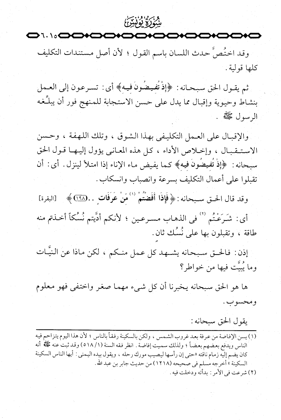 والإقبال على العمل التكليفي بهذا الشوق، وتلك اللهفة، وحسن الاستقبال، وإخلاص الأداء، كل هذه المعاني يؤول إليها قول الحق سبحانه: {إِذْ تُفِيضُونَ فِيهِ} كما يفيض ماء الإناء إذا امتلأ لينزل. أي: أن تقبلوا علىأعمال التكليف بسرعة وانصباب وانسكاب.