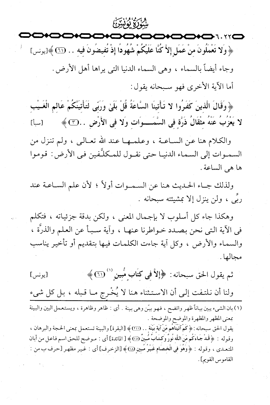 وهكذا جاء كل أسلوب لا بإجمال المعنى، ولكن بدقة جزئياته، فتكلم في الآية التي نحن بصدد خواطرنا عنها، وآية سبأ عن العلم والذرَّة، والسماء والأرض، وكل آية جاءت الكلمات فيها بتقديم أو تأخير يناسب مجالها.