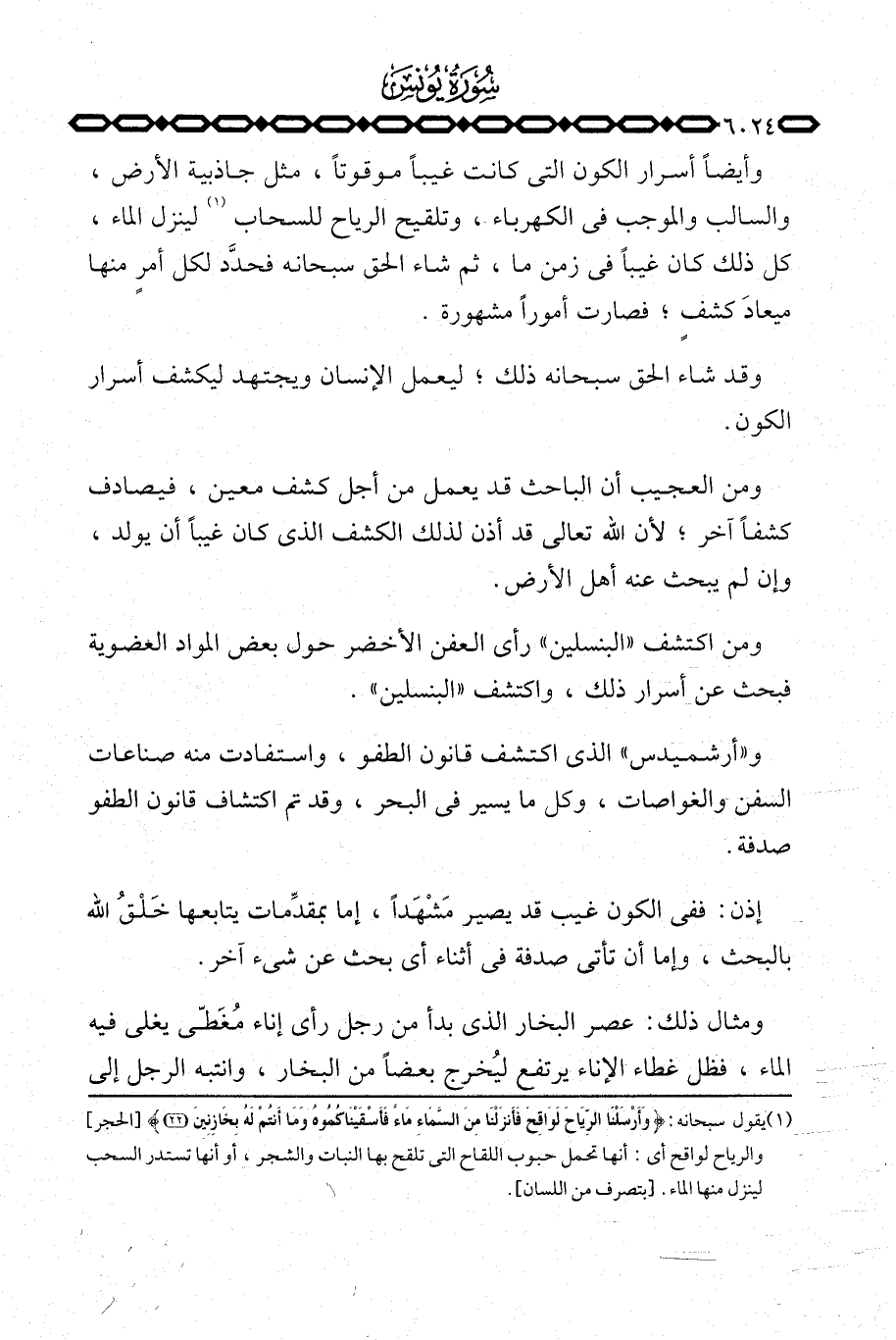 وأيضاً أسرار الكون التي كانت غيباً موقوتاً، مثل جاذبية الأرض، والسالب والموجب في الكهرباء، وتلقيح الرياح للسحاب لينزل الماء، كل ذلك كان غيباً في زمن ما، ثم شاء الحق سبحانه فحدَّد لكل أمرٍ منها ميعادَ كشفٍ، فصارت أموراً مشهورة.