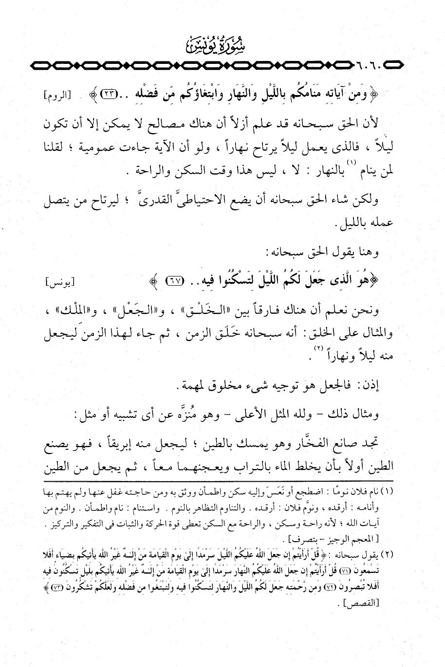 {هُوَ الذي جَعَلَ لَكُمُ اليل لِتَسْكُنُواْ فِيهِ} يونس: 67] .