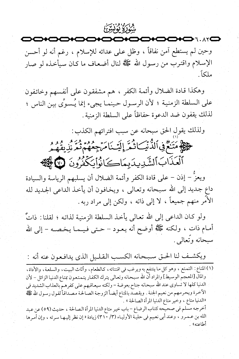 وهكذا قادة الضلال وأئمة الكفر، هم مشفقون على أنفسهم وخائفون على السلطة الزمنية؛ لأن الرسول حينما يجيء إنما يُسوِّي بين الناس؛ لذلك يقفون ضد الدعوة حفاظاً على السلطة الزمنية.