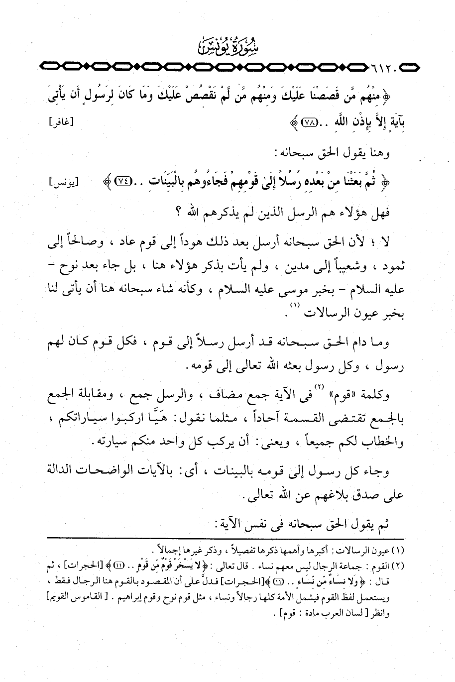 {مِنْهُم مَّن قَصَصْنَا عَلَيْكَ وَمِنْهُمْ مَّن لَّمْ نَقْصُصْ عَلَيْكَ وَمَا كَانَ لِرَسُولٍ أَن يَأْتِيَ بِآيَةٍ إِلاَّ بِإِذْنِ الله} [غافر: 78] .