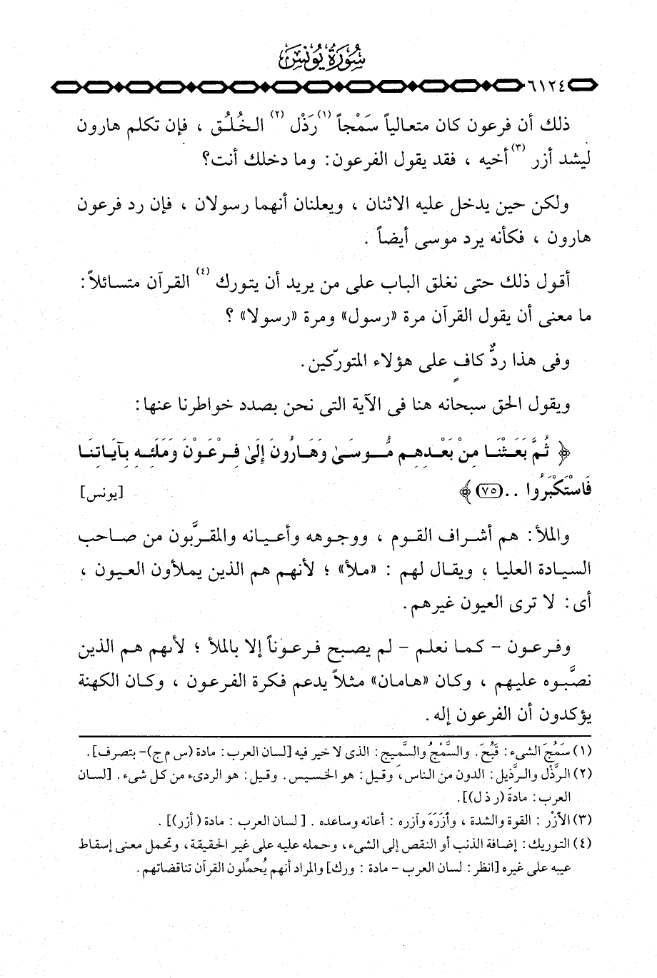 {ثُمَّ بَعَثْنَا مِن بَعْدِهِمْ موسى وَهَارُونَ إلى فِرْعَوْنَ وَمَلَئِهِ بِآيَاتِنَا فاستكبروا} [يونس: 75] .