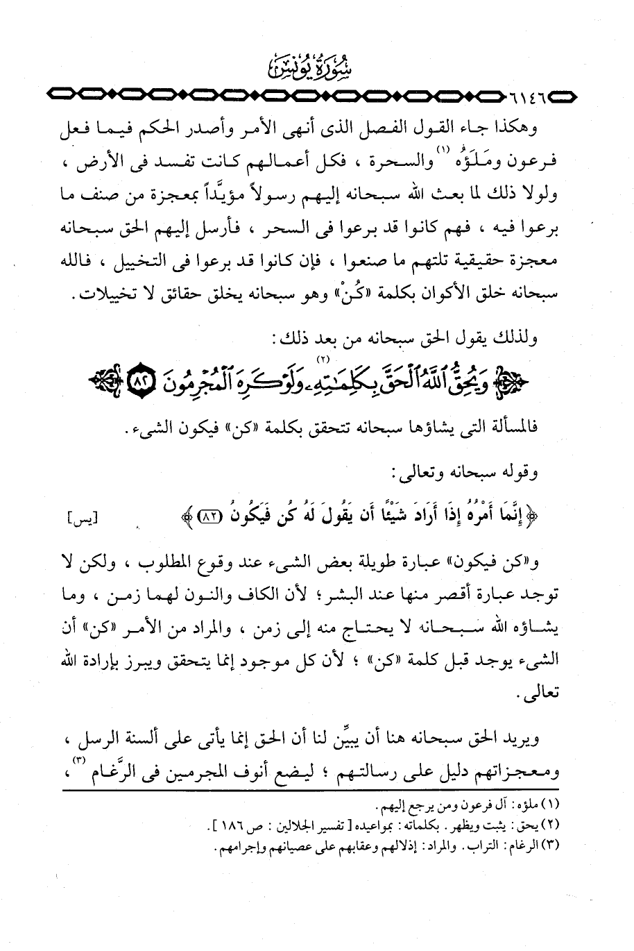 و «كن فيكون» عبارة طويلة بعض الشيء عند وقوع المطلوب، ولكن لا توجد عبارة أقصر منها عند البشر؛ لأن الكاف والنون لهما زمن، وما يشاؤه الله سبحانه لا يحتاج منه إلى زمن، والمراد من الأمر «كن» أن الشيء يوجد قبل كلمة «كن» ؛ لأن كل موجود إنما يتحقق ويبرز بإرادة الله تعالى.