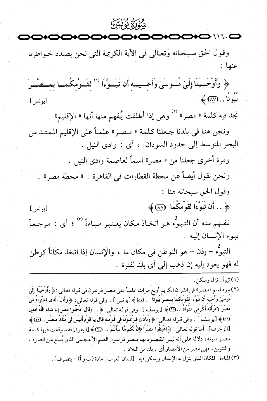 {أَن تَبَوَّءَا لِقَوْمِكُمَا} [يونس: 87] .