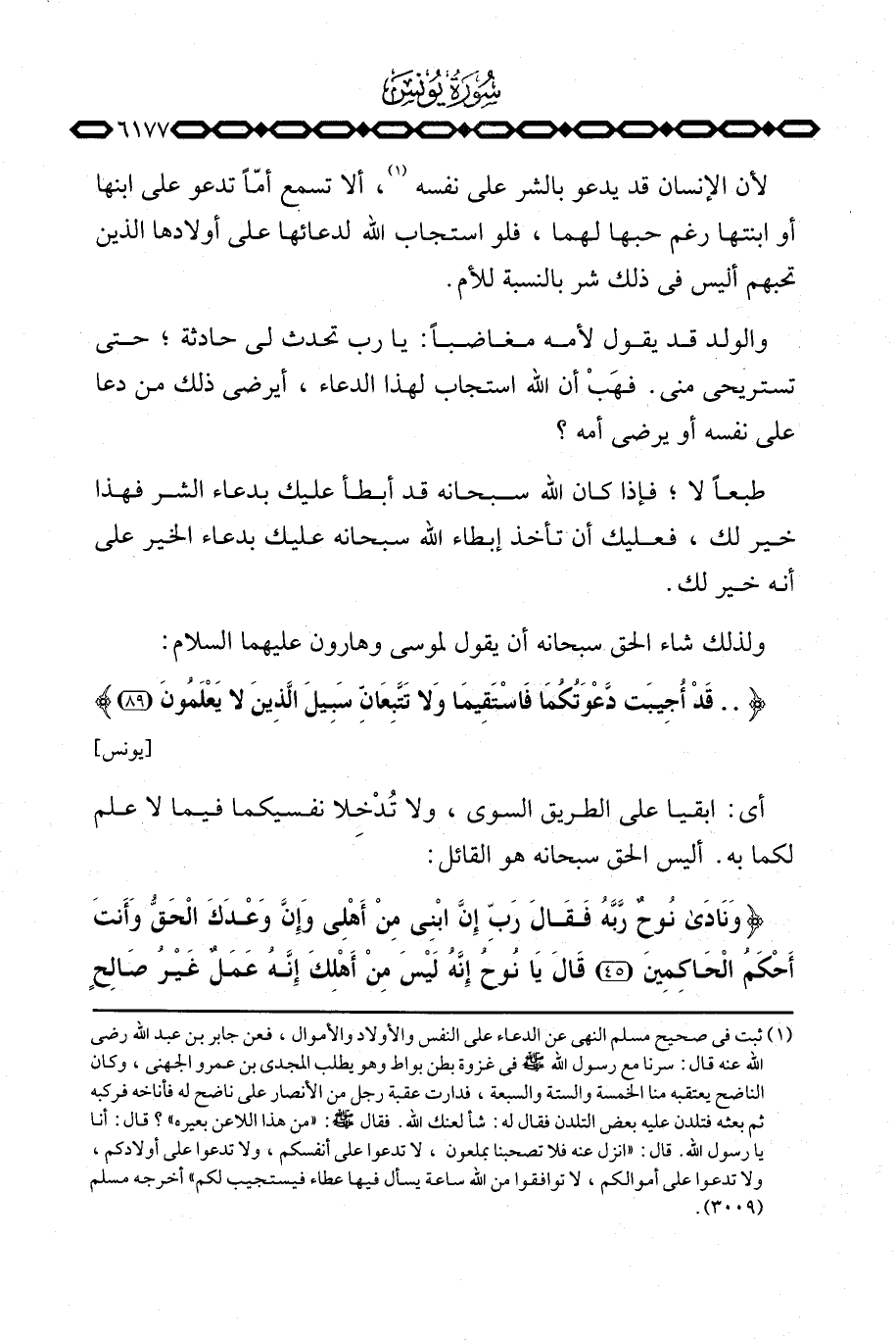 والولد قد يقول لأمه مغاضباً: يا رب تحدث لي حادثة؛ حتى تستريحي مني. فهَبْ أن الله استجاب لهذا الدعاء، أيرضي ذلك من دعا على نفسه أو يرضي أمه؟