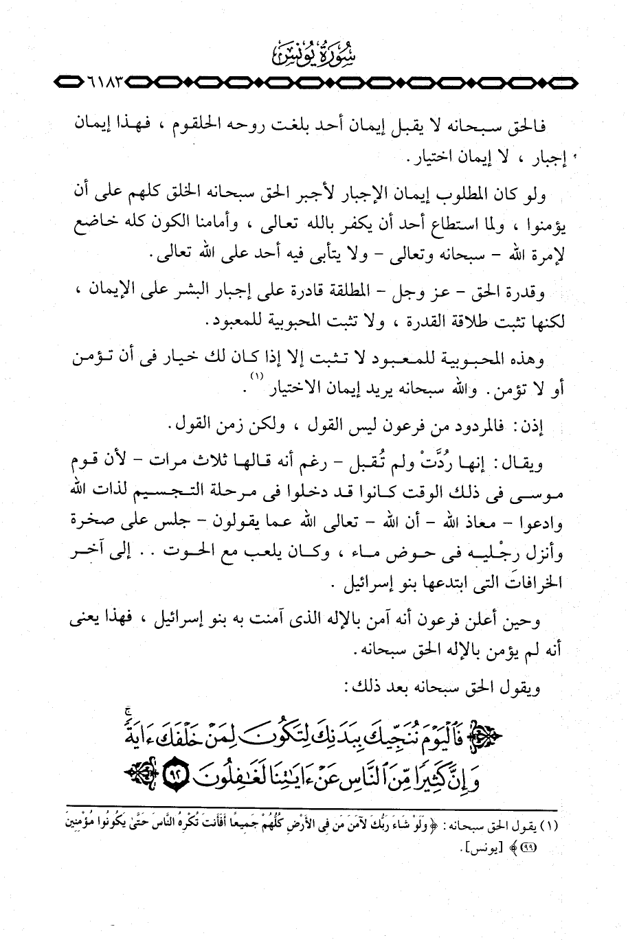 وقدرة الحق عَزَّ وَجَلَّ المطلقة قادرة على إجبار البشر على الإيمان، لكنها تثبت طلاقة القدرة، ولا تثبت المحبوبية للمعبود.