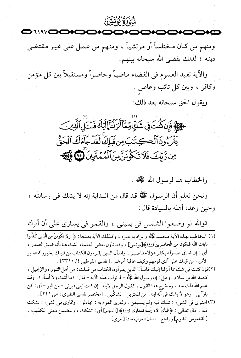 ونحن نعلم أن الرسول صَلَّى اللَّهُ عَلَيْهِ وَسَلَّم َ قد قال من البداية إنه لا يشك في رسالته، وحين وعده أهله بالسيادة قال: