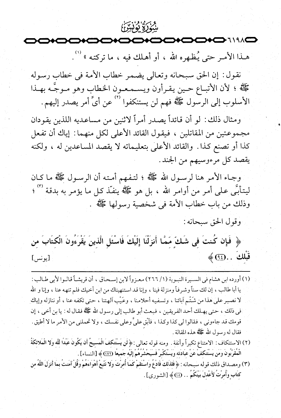 وجاء الأمر هنا لرسول الله صَلَّى اللَّهُ عَلَيْهِ وَسَلَّم َ؛ لتفهم أمته أن الرسول صَلَّى اللَّهُ عَلَيْهِ وَسَلَّم َ ما كان ليتأبَّى على أمر من أوامر الله، بل هو صَلَّى اللَّهُ عَلَيْهِ وَسَلَّم َ ينفّذ كل ما يؤمر به بدقة؛ وذلك من باب خطاب الأمة في شخصية رسولها صَلَّى اللَّهُ عَلَيْهِ وَسَلَّم َ.