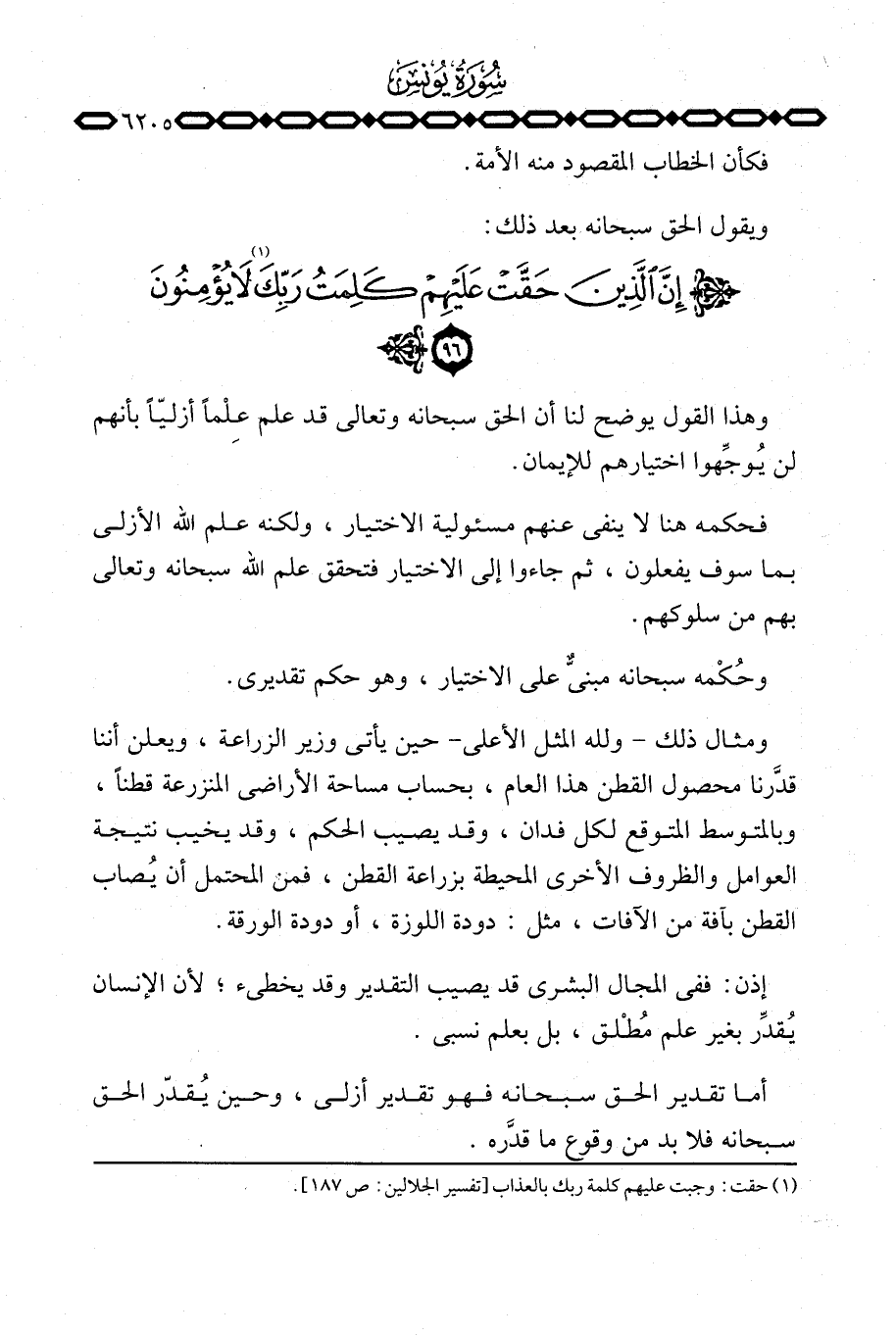وحُكمْه سبحانه مبنيٌّ على الاختيار، وهو حكم تقديري.