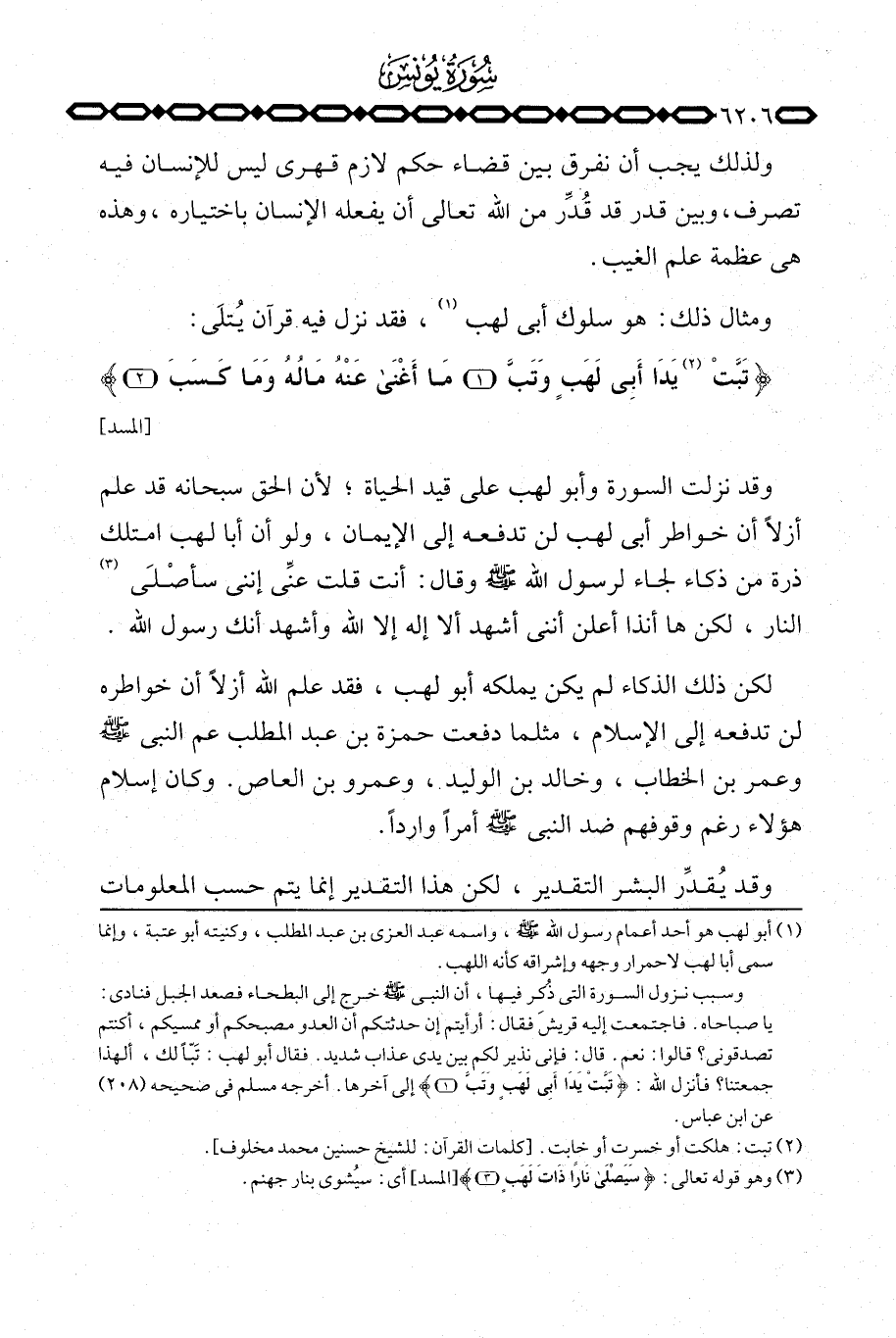 وقد نزلت السورة وأبو لهب على قيد الحياة؛ لأن الحق سبحانه قد علم أزلاً أن خواطر أبي لهب لن تدفعه إلى الإيمان، ولو أن أبا لهب امتلك ذرة من ذكاء لجاء لرسول الله صَلَّى اللَّهُ عَلَيْهِ وَسَلَّم َ وقال: أنت قلت عنِّي إنني سأصْلَى النار، لكن ها أنذا أعلن أنني أشهد ألا إله إلا الله وأشهد أنك رسول الله.