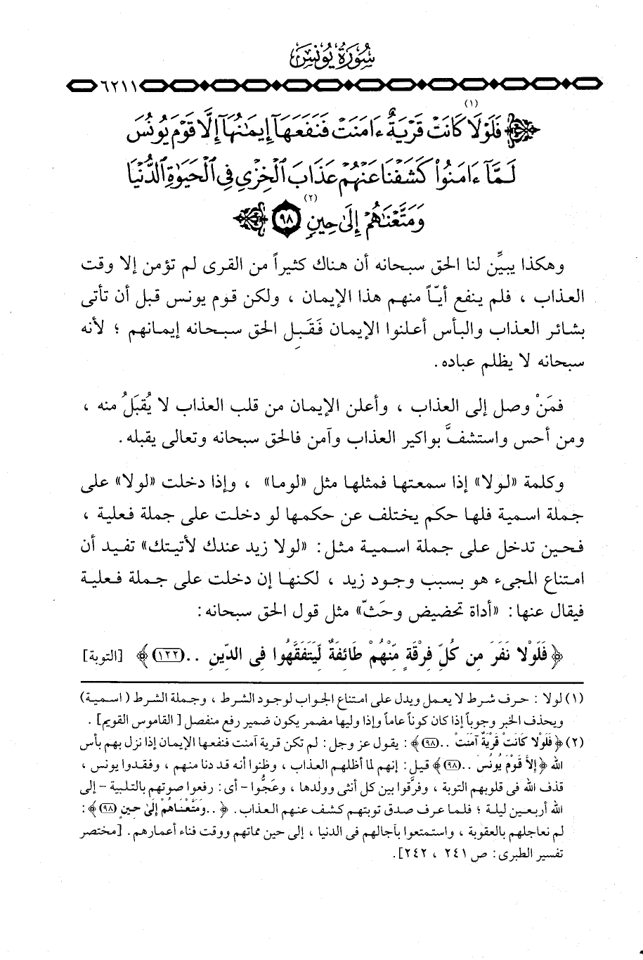 {فَلَوْلاَ كَانَتْ قَرْيَةٌ آمَنَتْ فَنَفَعَهَآ إِيمَانُهَا}