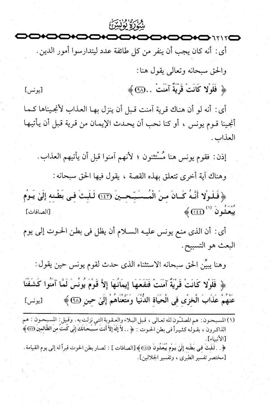 {فَلَوْلاَ أَنَّهُ كَانَ مِنَ المسبحين لَلَبِثَ فِي بَطْنِهِ إلى يَوْمِ يُبْعَثُونَ} [الصافات: 143144] .